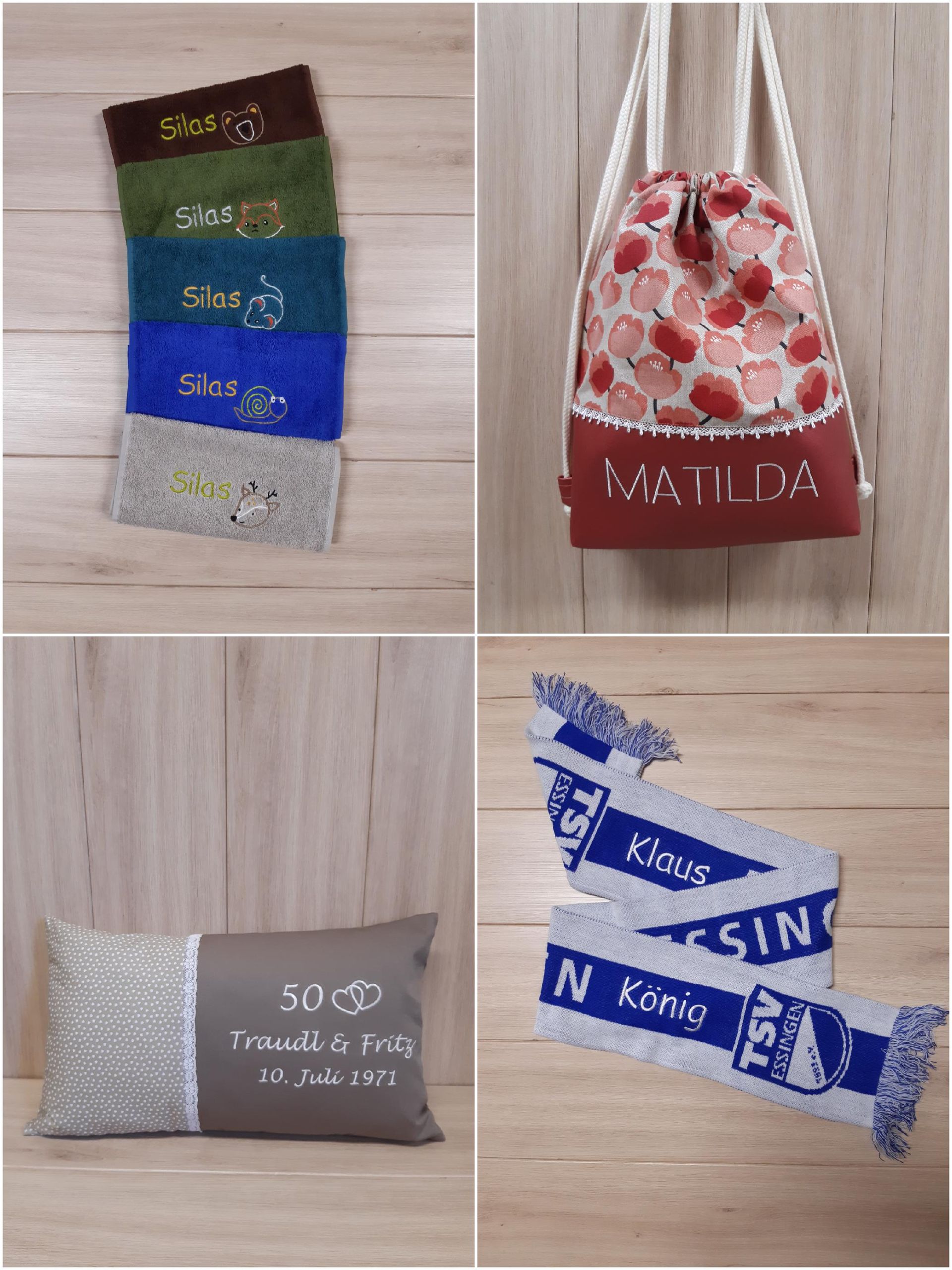 Natürlich kannst du auch von mir vorgefertigte Produkte personalisieren lassen oder eigene Artikel zum Besticken vorbeibringen.